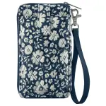 Bicolor Floral Navy RFID Cell Phone Wristlet Wallet