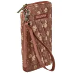 Burgundy Floral RFID Cell Phone Wristlet Wallet Wallet