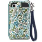 Delicate Floral Blue RFID Cell Phone Wristlet Wallet
