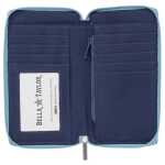 CLASSIC AMERICAN FLORALS: Delicate Floral Blue brings back sweet childhood memories of Grandma’s garden with traditional pretty flowers in light blue, soft teal, silver gray and olive on a vintage cream background. Wallets are lined with durable navy microfiber.